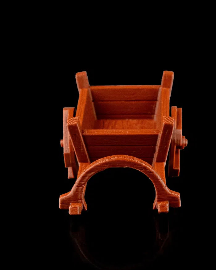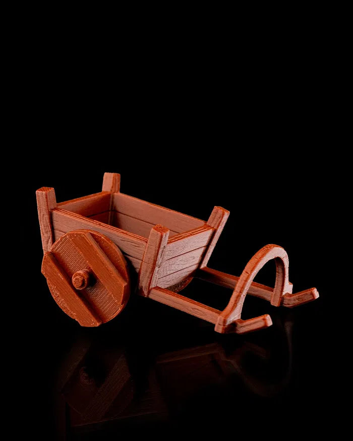 The Horse Cart figurine features a rustic wooden design with large wheels and front handle bars, combining vintage farm charm with miniature functionality. The Horse Cart adds authenticity and character to dioramas, shelves, or tabletop displays, making it a delightful accent for collectors and fans of rural-themed décor.