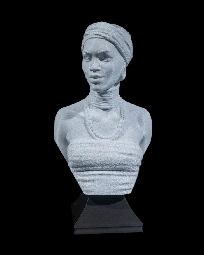 Regal and empowering, the Women of the World – African bust captures the spirit of heritage and strength. Draped in vivid blue fabric and adorned with golden jewellery, this piece reflects cultural pride and timeless grace, making it a powerful addition to any collection.