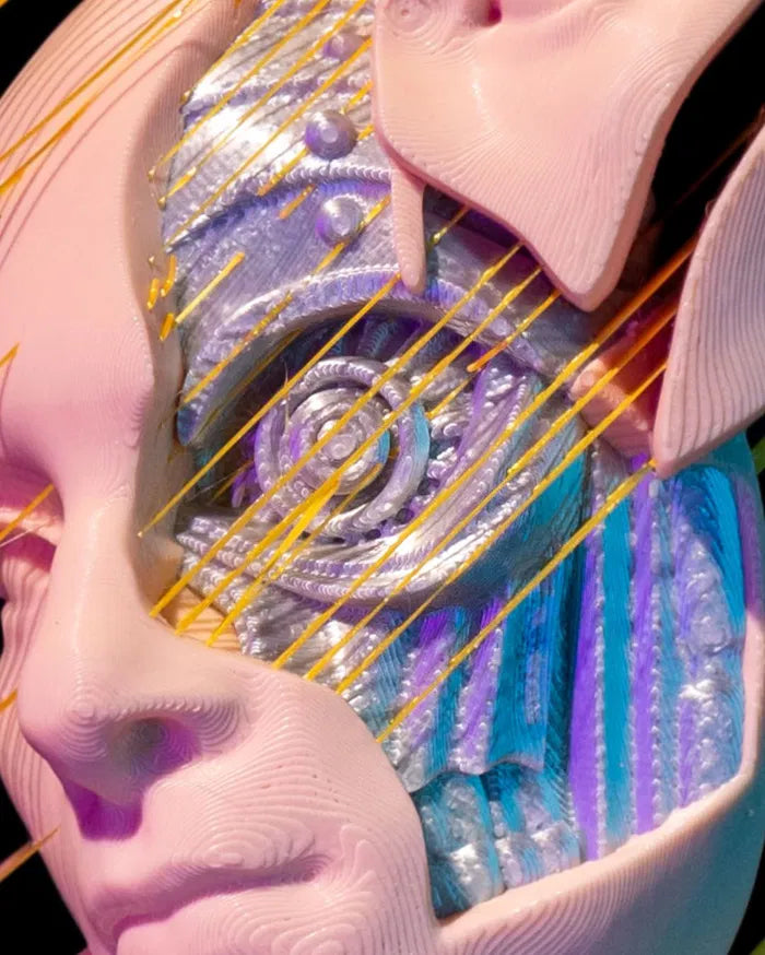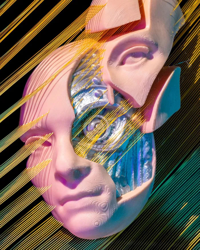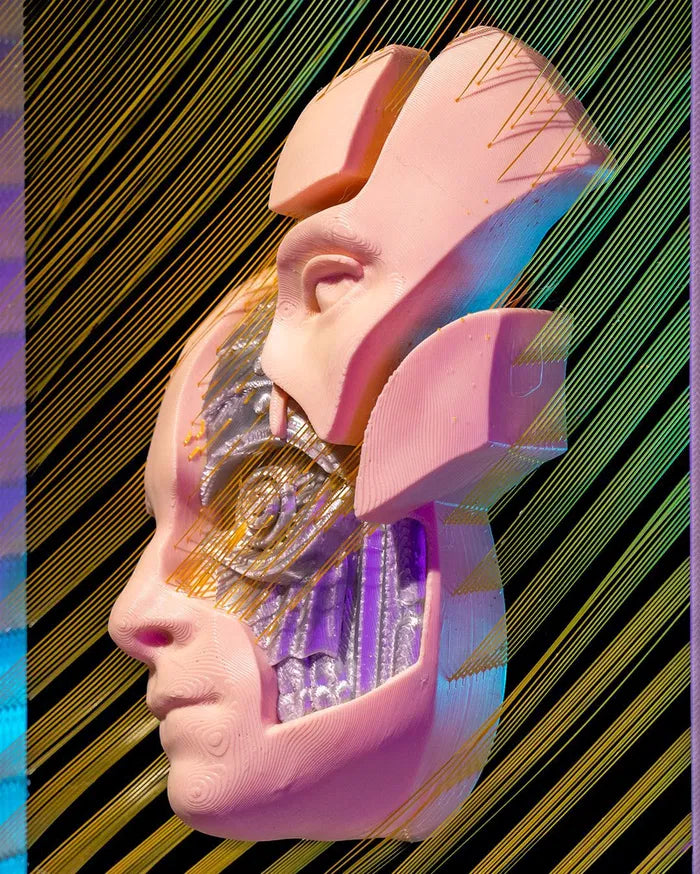 - Human Machine Fusion: Dual-faced sculpture merging human features with robotic elements.