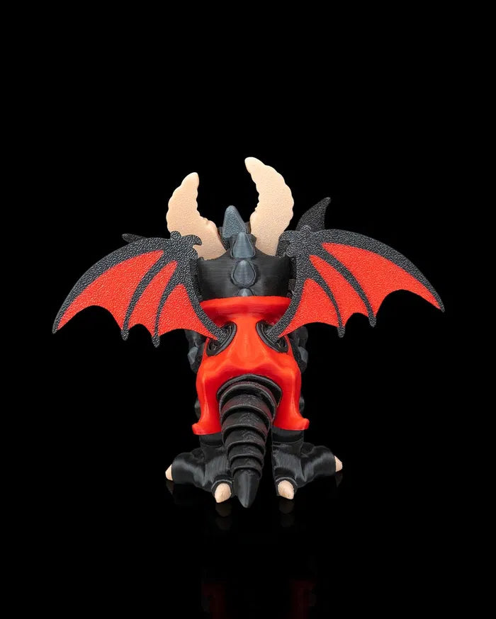Night Fang is a fearsome little vampire dragon, cloaked in darkness and ready to haunt the night. With jet-black scales, crimson wings, and sharp ivory horns, this 3D-printed figure exudes gothic charm. Perched against a glowing window backdrop, it’s a striking piece that blends fantasy and Halloween flair.
