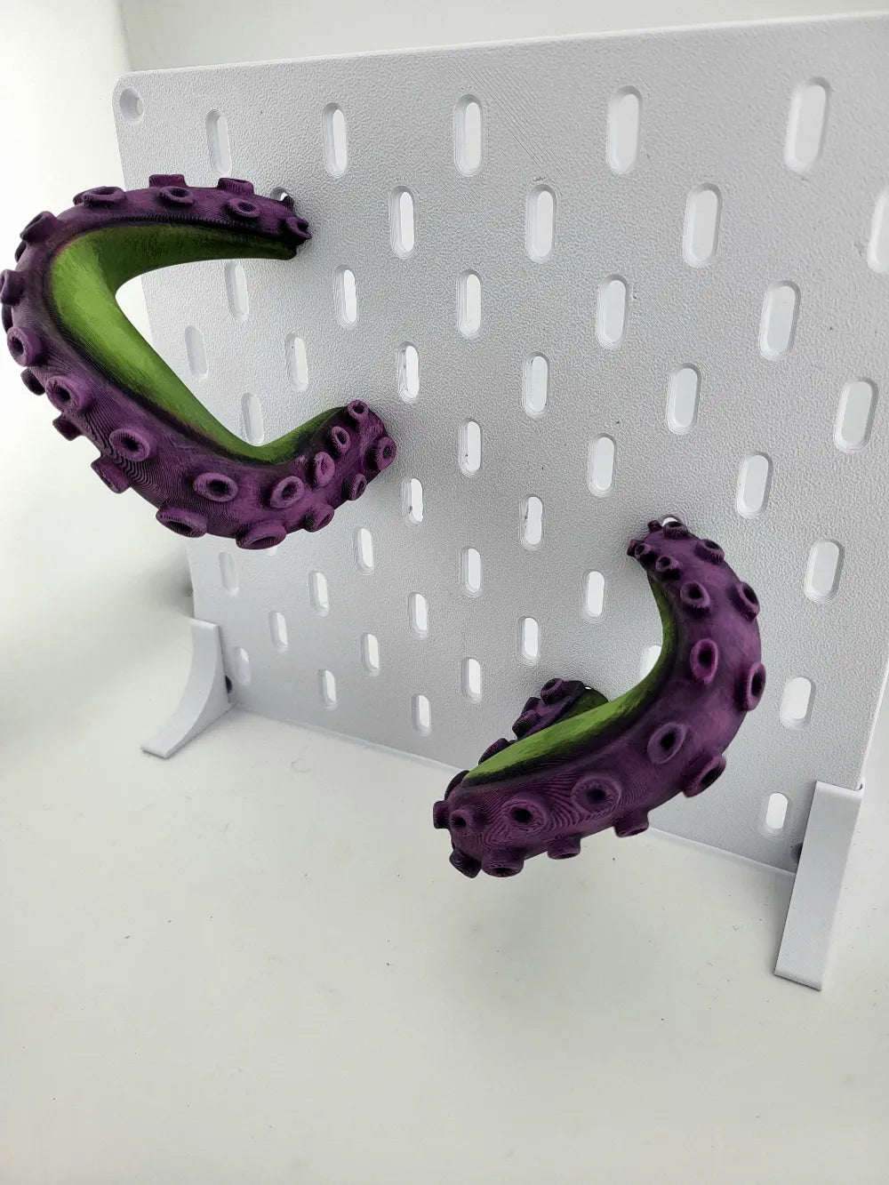 The Ikea skadis tentacle decoration adds a bold and playful twist to any pegboard setup, bringing a creature-feature aesthetic to your game room, studio, or creative workspace. Designed to mimic curling octopus limbs, these pieces transform a simple Skådis board into a dynamic display that stands out instantly. Their textured surface and dual-colour finish make them both decorative and eye-catching.