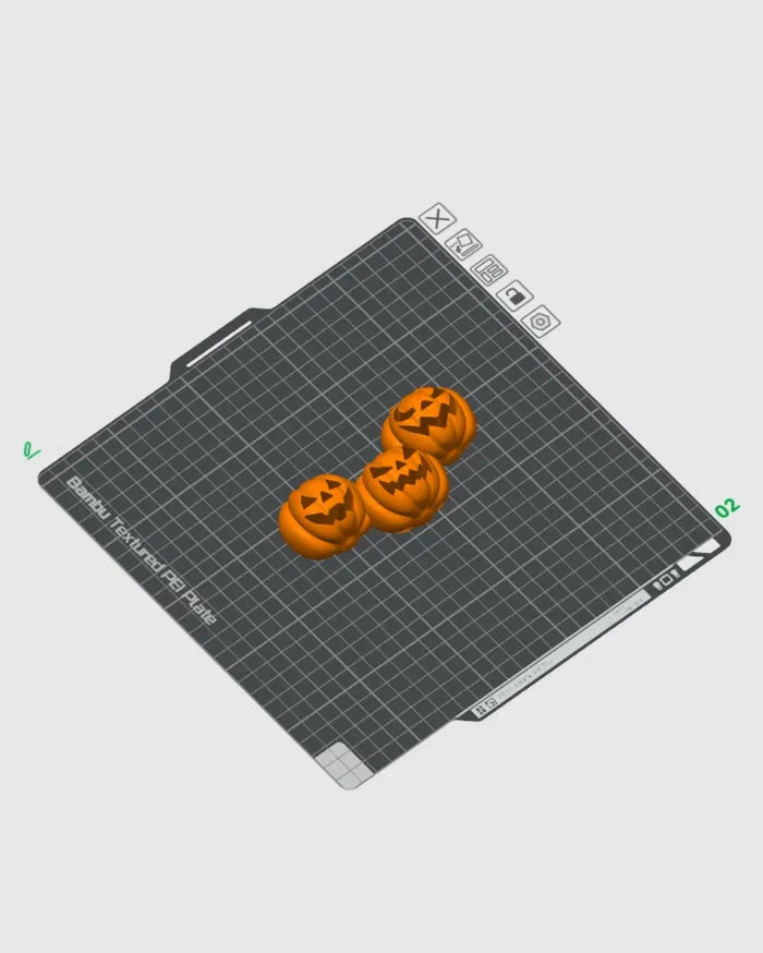 - Three carved pumpkins with cheerful expressions