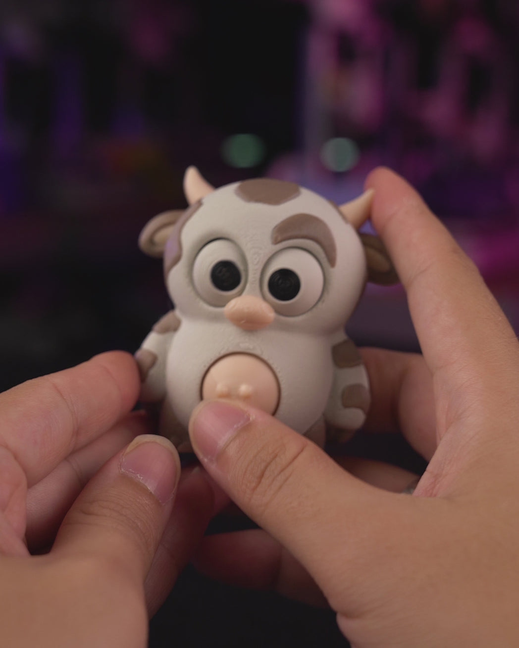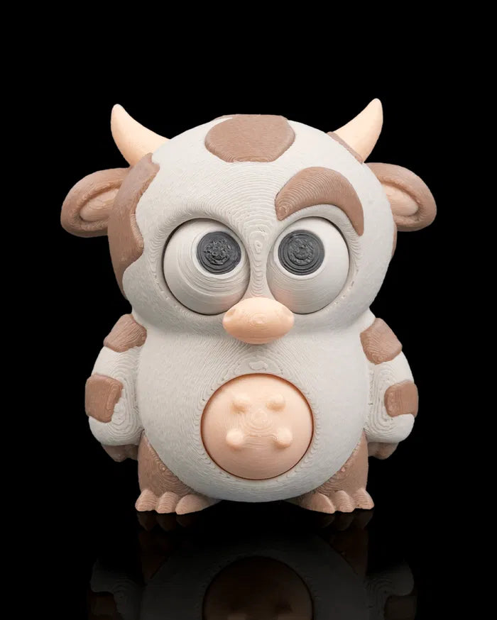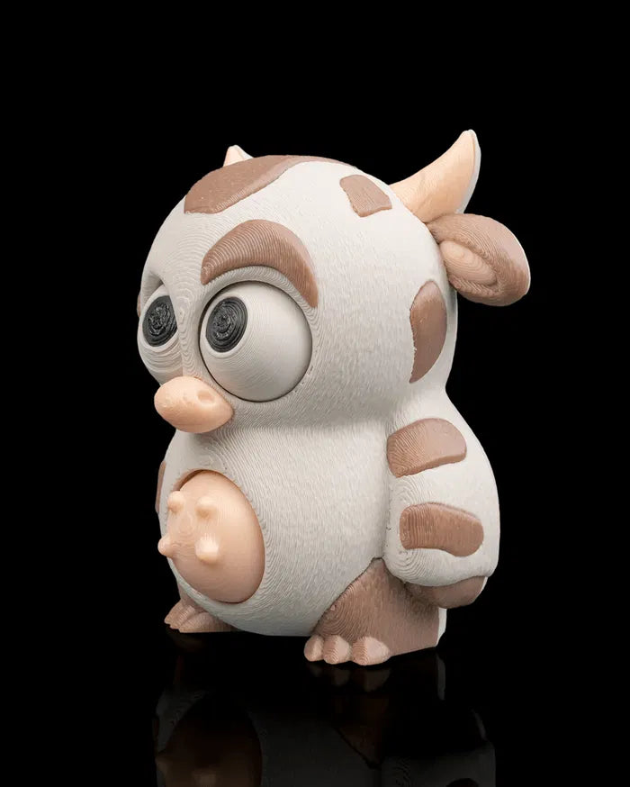 Moo-ving Belly is a charming cow character designed to bring playful farmyard personality to your decor. With its cream-coloured body, soft brown spots, and friendly expression, Moo-ving Belly creates a cheerful display piece that fits perfectly on desks, shelves, or collector setups.
