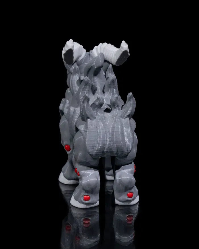 The Shub-Niggurath Figurine brings cosmic horror to life with a compact creature design featuring curled horns, glowing red eyes, and an unsettling grin. With its textured grey body and eerie presence, the Shub-Niggurath Figurine creates a haunting display piece that adds dark mythos energy to desks, shelves, or horror themed collections.