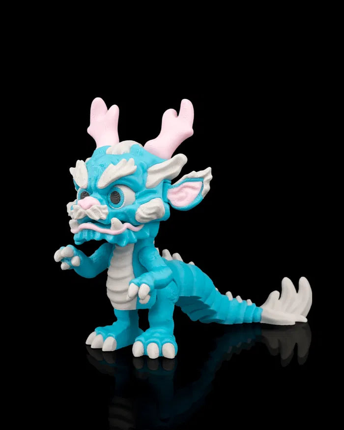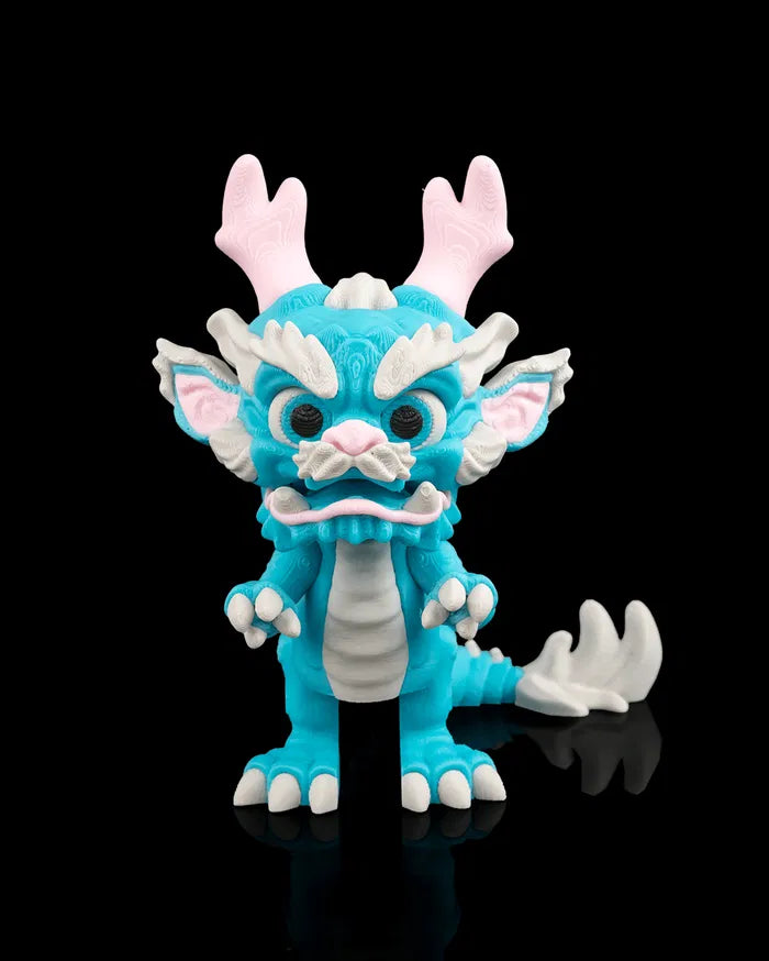 The Lucky Spark is a lively dragon figure designed to bring charm and energy to your display. Featuring a vibrant turquoise and white body with bold red and gold accents, the Lucky Spark captures a playful sense of luck and personality, making it a cheerful addition to desks, shelves, or fantasy collections.