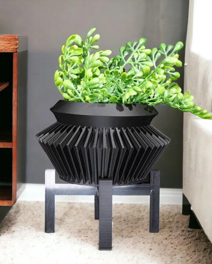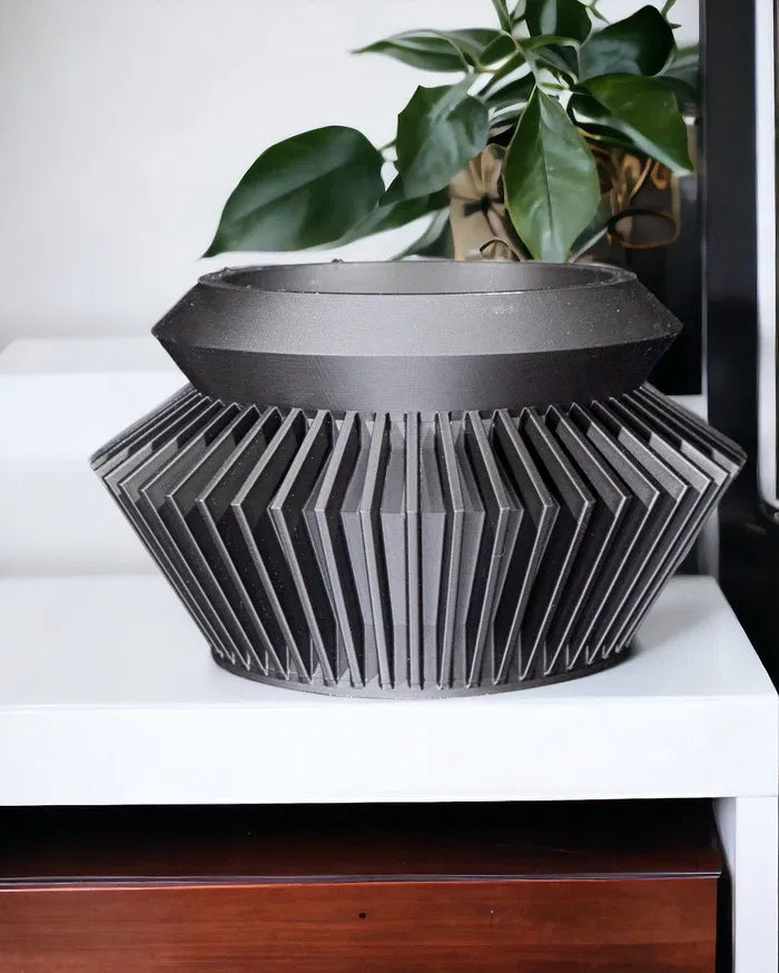 The Quano Planter features a faceted geometric design with a minimalist elevated base, combining bold architecture with functional plant display. The Quano Planter enhances indoor greenery while serving as a sculptural accent on shelves, tables, or windowsills.