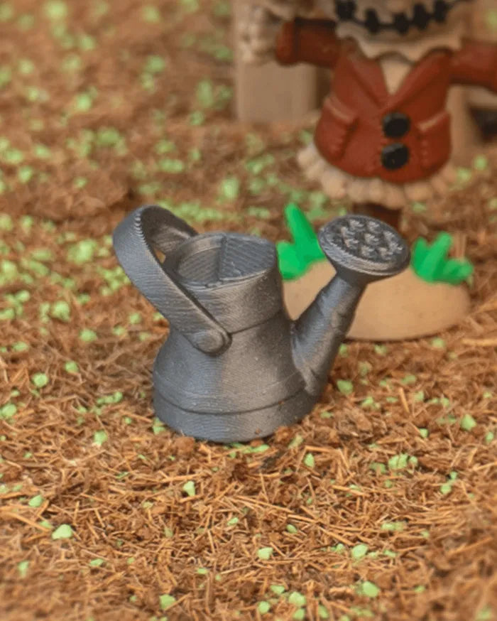 This miniature watering can brings a splash of charm to your tabletop farm or garden setup. Its classic shape and metallic finish make it a fun and functional-looking accessory for your display.
