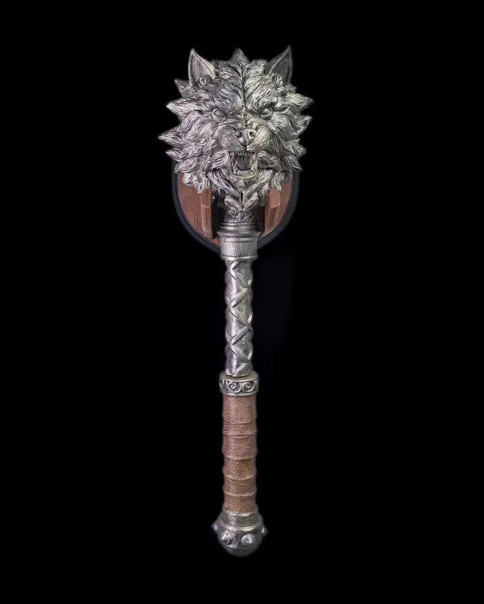 Unleash your inner beast with the feral might of the Lone Wolf Mace. Featuring snarling wolf heads and a fearsome spiked form, this weapon is perfect for those who fight with untamed spirit and primal dominance.