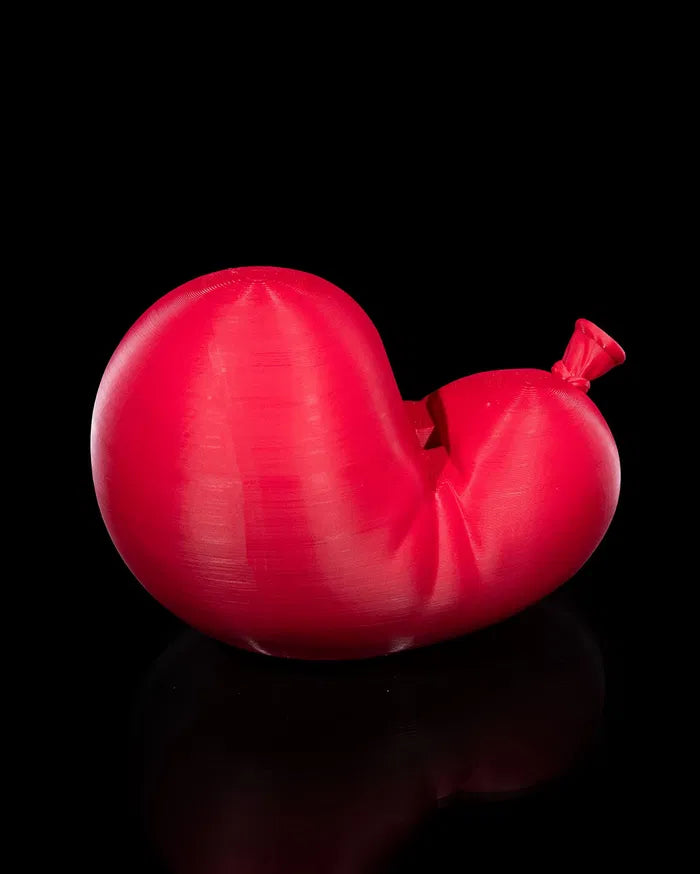- Vibrant red design with a smooth, rounded form