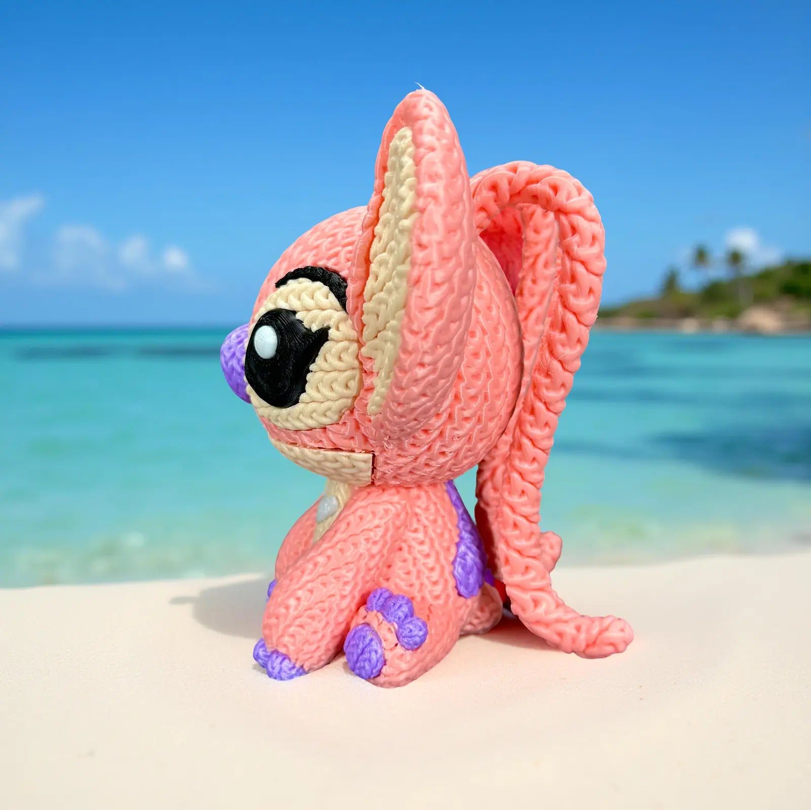 Complete your cosmic ohana with the Angel Knitted Crochet figure. This 3D-printed model captures Experiment 624 in a charming seated pose, featuring a highly detailed knitted texture that emulates the look of a handcrafted amigurumi plush.