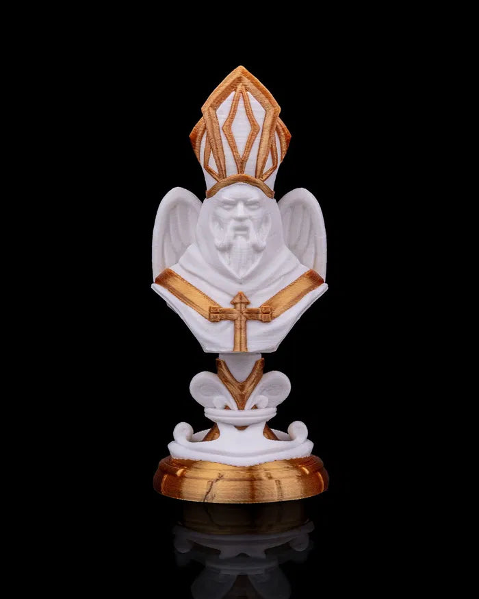 Angelic Bishop brings wisdom and serenity to your celestial court. With a solemn expression, ornate mitre, and radiant wings, this figure symbolizes divine guidance and spiritual strength. Whether leading a sacred procession or holding the line in a fantasy chess set, the Bishop commands respect and reverence.