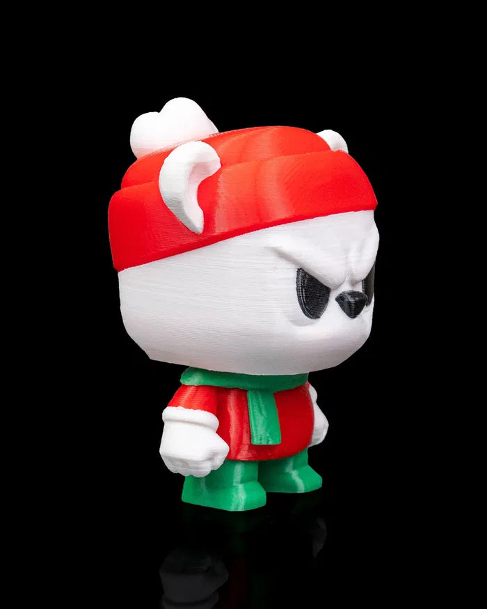 Anty Bear brings a cozy holiday vibe with a confident stance and a playful expression. This 3D printed figure features a clean layered texture with strong colour contrast across the outfit and accessories. The red and green winter styling gives it a festive look that stands out on display. Designed as a solid décor piece, it fits naturally into seasonal collections or character displays.