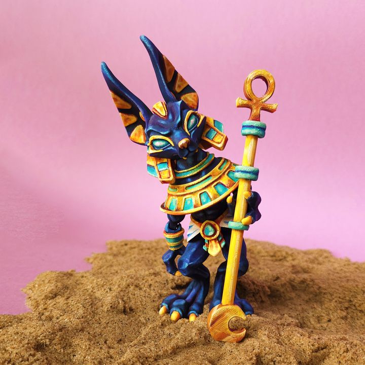 - Golden Staff with Ankh Detail: Includes a detailed staff accessory that adds a divine and symbolic touch to the Anubis.