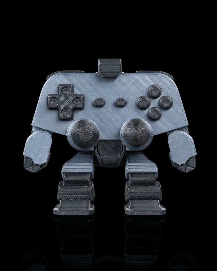Arcadion is a bold custom toy that transforms the look of a classic game controller into a robotic companion. With joystick eyes and button arms, it captures the perfect mix of nostalgia and futuristic design.