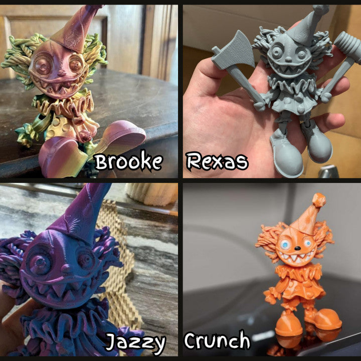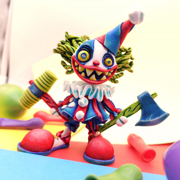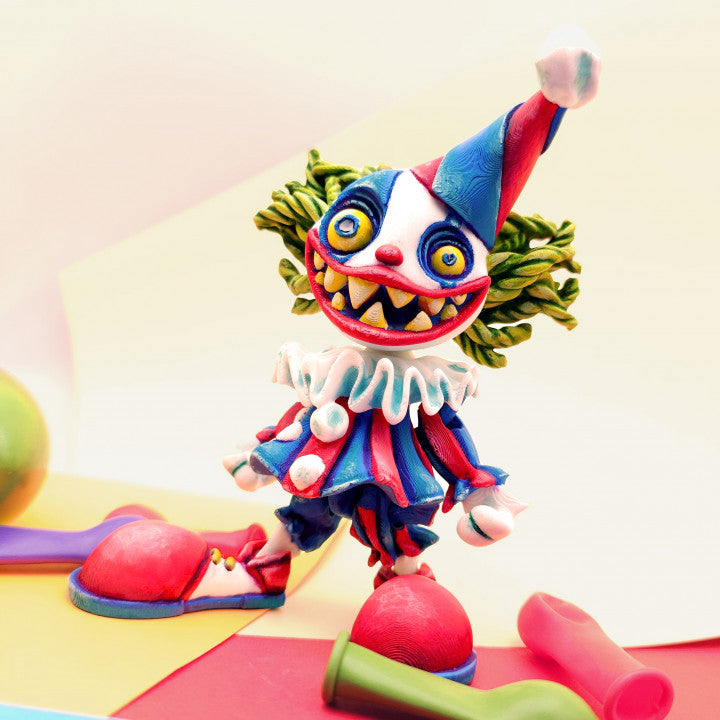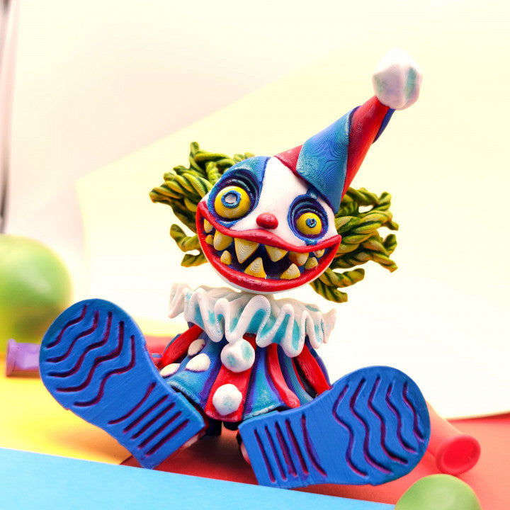 - Sinister Entertainer Silhouette: Recognizable Articulated Creepy Clown design featuring specialized surface textures and a bold, colourful aesthetic that captures a spooky carnival vibe.
