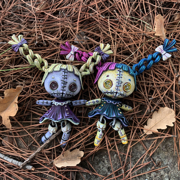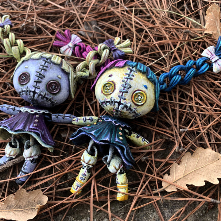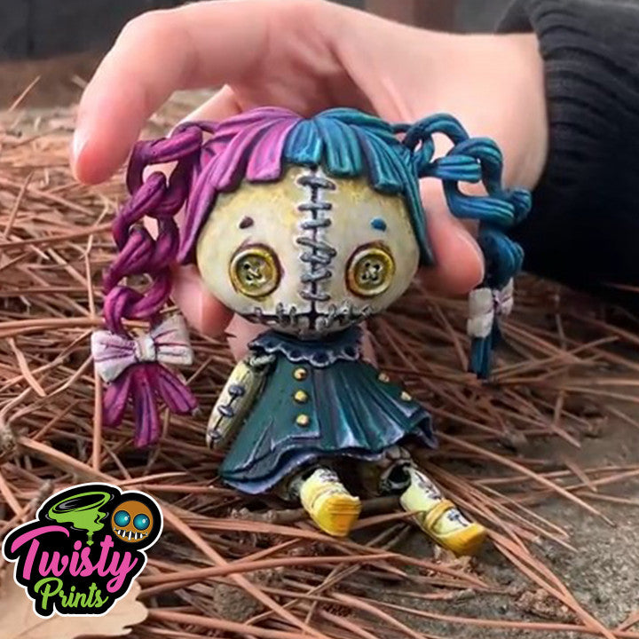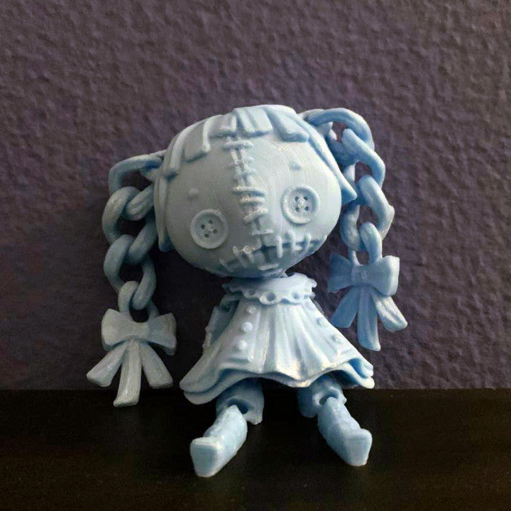 The Articulated Creepy Doll blends eerie charm with playful design, offering a professionally finished character figure that is perfect for collectors who love a mix of cute and spooky. Featuring haunting button eyes and movable pigtails, this Articulated Creepy Doll combines a vintage toy aesthetic with a polished collectible twist for shelves and display setups.