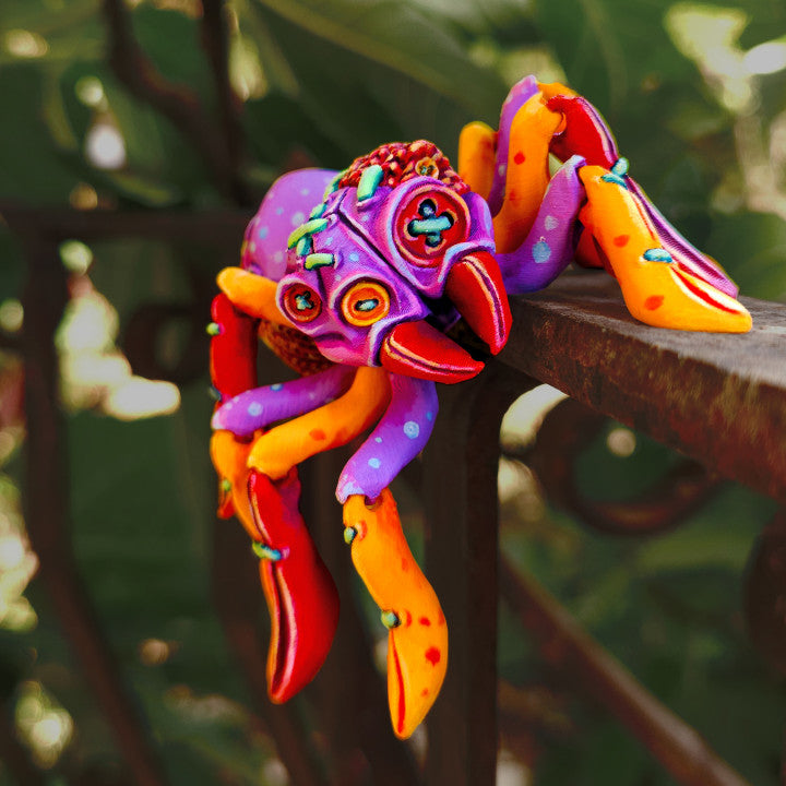 The Articulated Stuffed Tarantula is a colourful and quirky little companion that is full of personality. With bright patterns, wiggly legs, and a playful look, the Articulated Stuffed Tarantula is designed to stand out in any collection. Featuring both a hanging hole option and a magnet-ready version, the Articulated Stuffed Tarantula offers creative and flexible display possibilities.