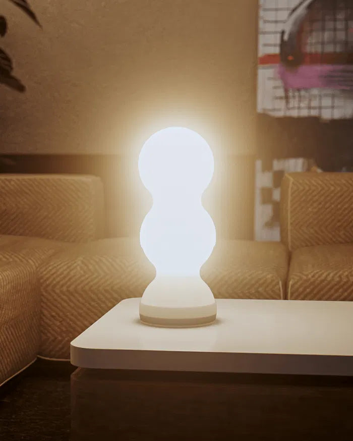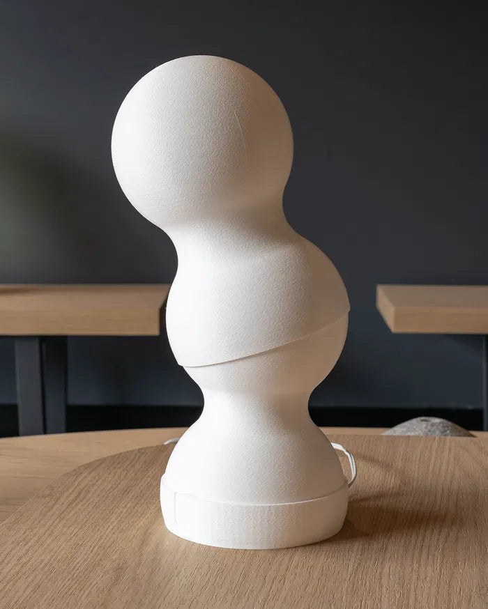 Aura - Table Lamp creates a warm and inviting glow that gently fills its surroundings. This 3D printed table lamp features a smooth, sculptural form with soft curves that diffuse light evenly. The balanced shape and layered texture help soften the brightness, creating a calm and atmospheric presence. It works beautifully as accent lighting for side tables, shelves, or quiet living spaces.