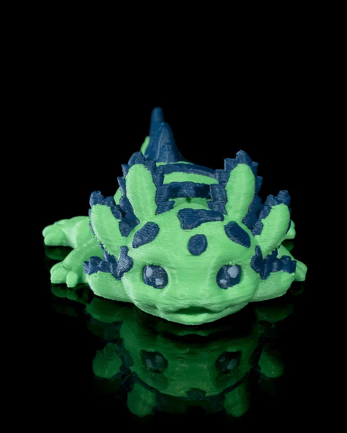 With zesty green scales and electric navy accents, Baby Sour is a little dragon with a punchy personality. Its wide-eyed expression and spiky crown give it a look that's as bold as its name suggests—perfect for collectors who like their fantasy creatures full of flavour and fun.