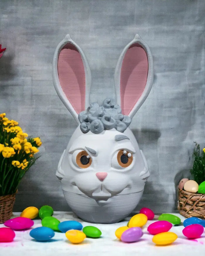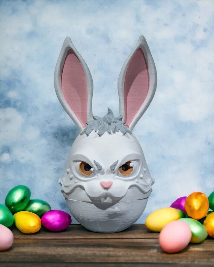 These mischievous egg cases feature three expressive bunny faces, each with their own attitude—from adorably sweet to sneakily sinister. Perfect for hiding surprises, tabletop games, or as display pieces, they bring a fun and slightly wicked twist to any bunny collection.