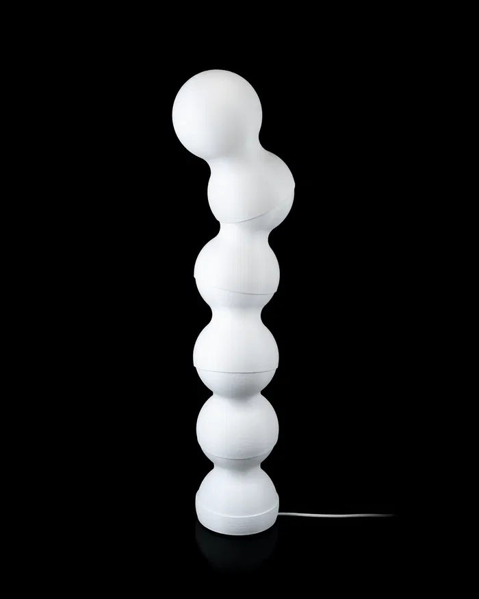 Beacon - Floor Lamp rises with a tall, sculptural form that draws the eye upward and anchors a space with calm presence. This 3D printed floor lamp features a smooth, flowing silhouette with a soft layered texture that diffuses light evenly. The vertical design creates a gentle, guiding glow that feels quiet and refined. Its minimalist look suits modern interiors while adding warmth and visual balance.
