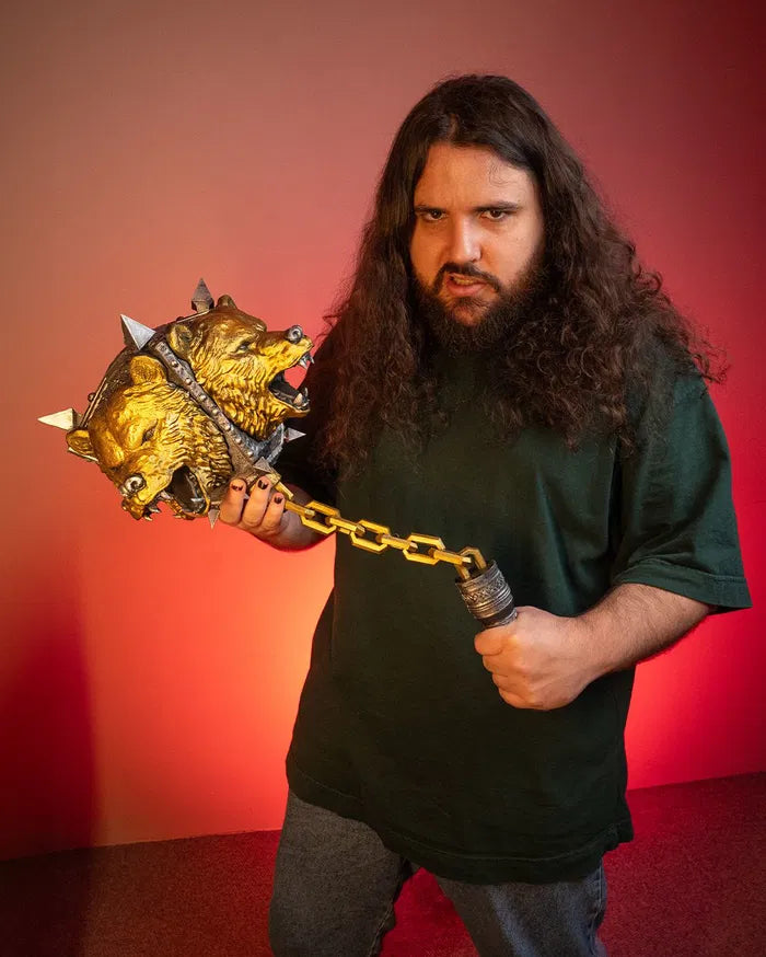 Unleash raw power with the roaring presence of the Bear’s Mighty Flail. Featuring a ferocious golden bear head chained to a rugged handle, this piece is built to intimidate and impress—ideal for fantasy roleplay or epic display.