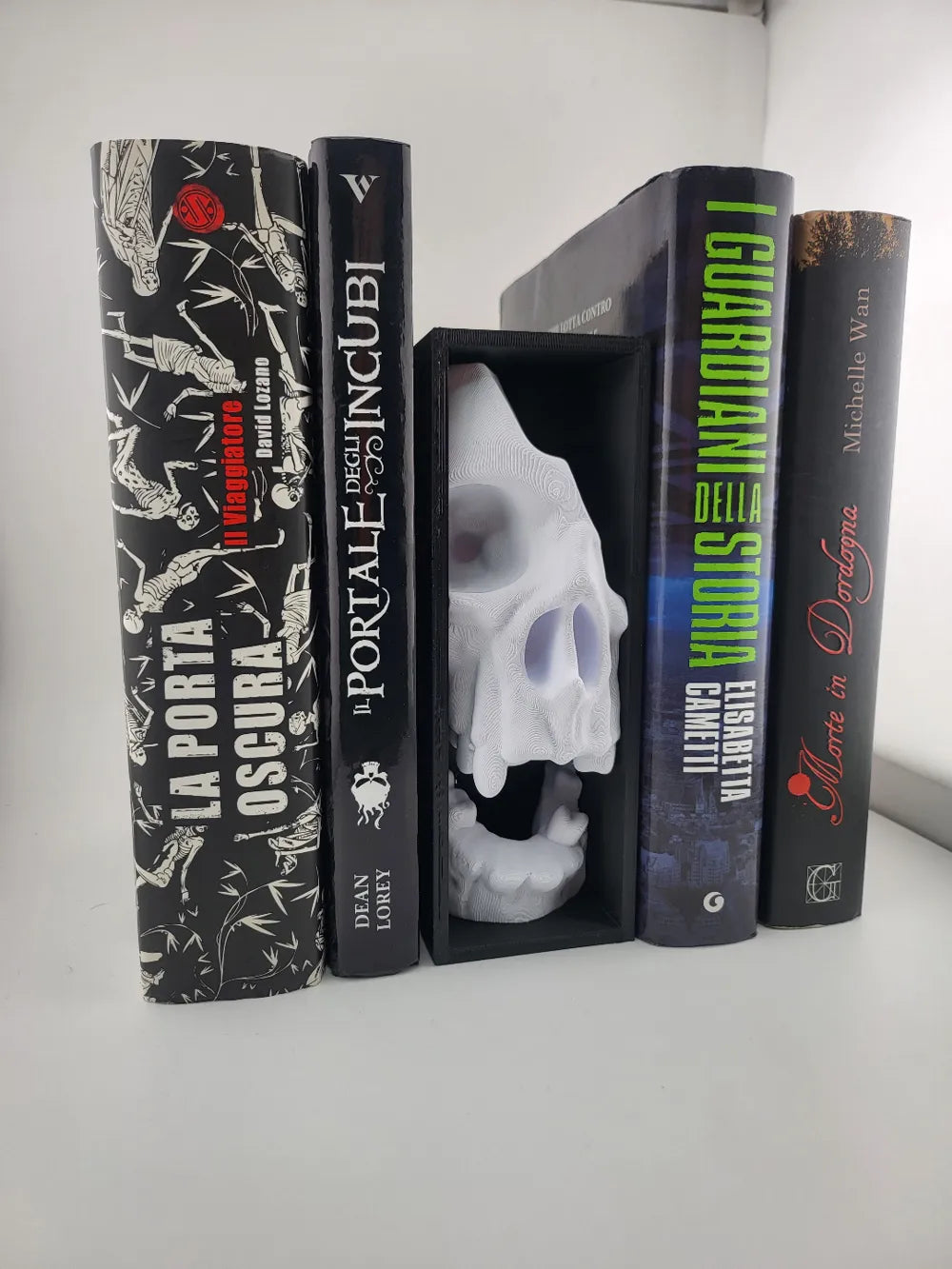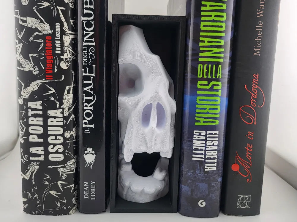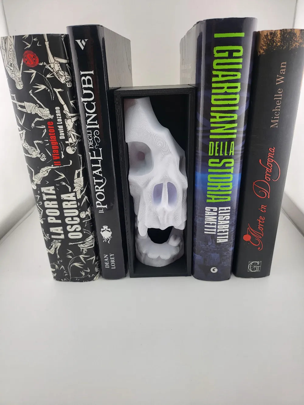 The Book Nook Broken Skull adds a haunting and dramatic accent to your bookshelf. Featuring a fractured, elongated skull with sharp contours and deep recessed details, the Book Nook Broken Skull brings dark fantasy energy to any reading space. Its slim, vertical design fits neatly between books, making it perfect for themed shelves, reading corners, or artistic décor displays.
