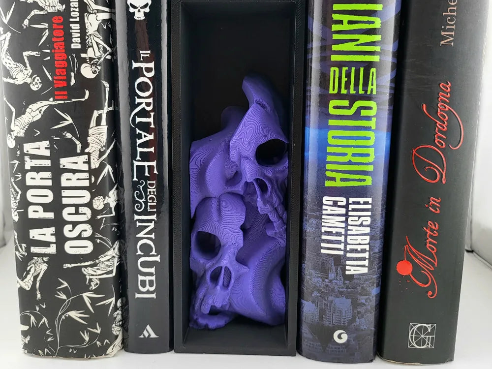 The Book Nook Fire Skull Piece brings dramatic fantasy and dark elegance to your bookshelf. Featuring stacked sculpted skulls rising in a flame-like formation, the Book Nook Fire Skull Piece adds bold visual impact and atmospheric charm. Its vivid colour, deep detailing, and compact vertical design make it perfect for bookshelves, themed rooms, or creative display setups.