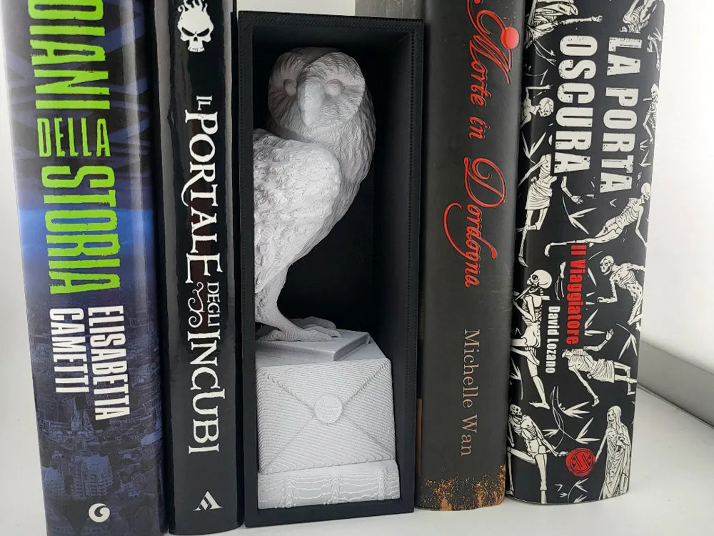 The Book Nook Harry Potter adds a touch of wizarding world charm to your bookshelf with a sculpted owl perched above a detailed Hogwarts-style acceptance letter. Designed to sit neatly between your books, the scene creates the illusion of a magical message arriving right on your shelf. The Book Nook Harry Potter turns an ordinary book gap into a whimsical display that celebrates the wonder and imagination of fantasy storytelling.