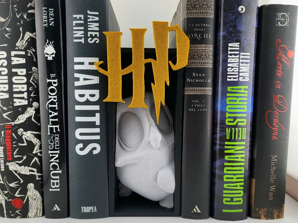 The Harry Potter Book Nook Little Edvige Edition adds a touch of wizarding charm to your bookshelf with a playful scene inspired by the magical world of Hogwarts. Featuring the golden HP initials and a sculpt of the beloved owl Edvige peeking through the design, this decorative insert creates the illusion of a hidden magical moment between your books. The Harry Potter Book Nook Little Edvige Edition is a delightful display piece for fans who want to bring a bit of wizarding atmosphere to their reading space.