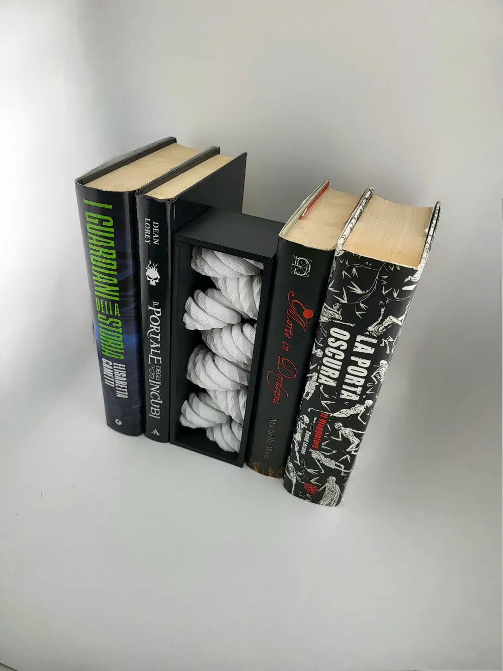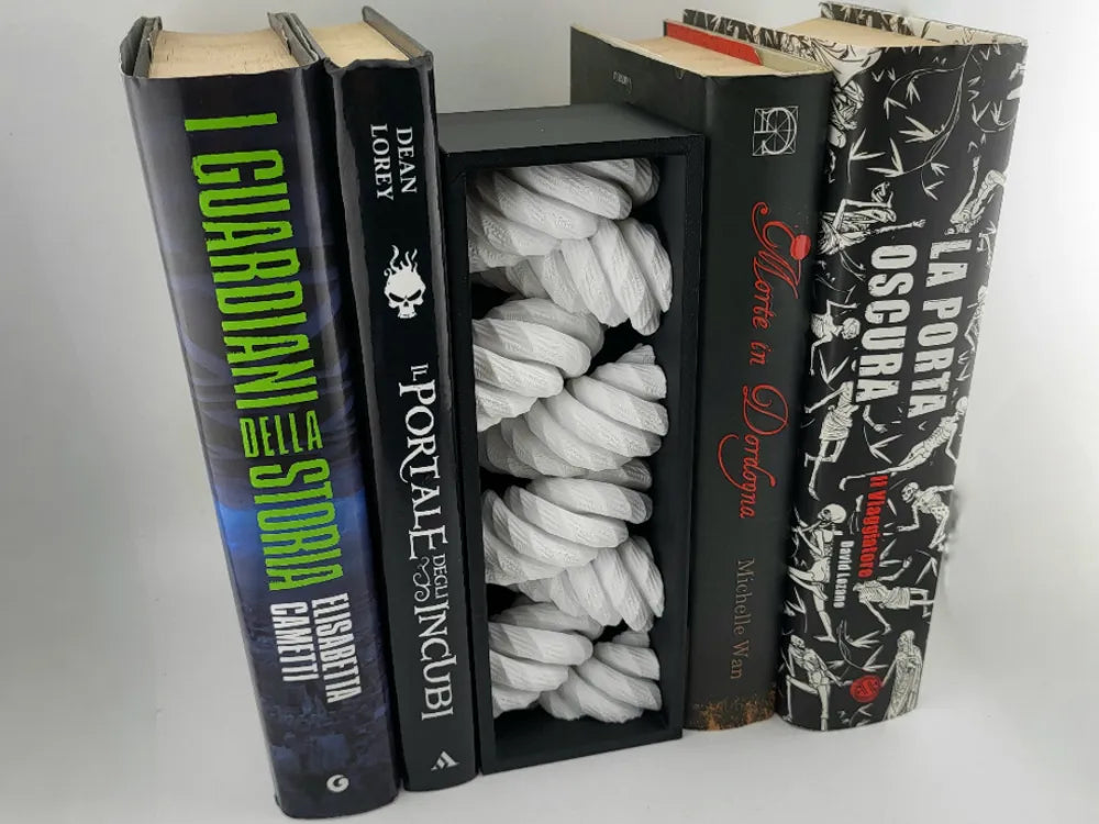 The Book Nook Rope adds a warm rustic accent to your bookshelf with its tightly twisted rope design. Slipping neatly between your books, the coiled texture creates the illusion of a thick nautical rope tucked into the shelf, adding depth and character without taking up extra space. The Book Nook Rope turns an ordinary shelf gap into a subtle decorative feature for reading spaces, offices, or cosy displays.