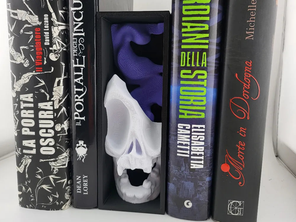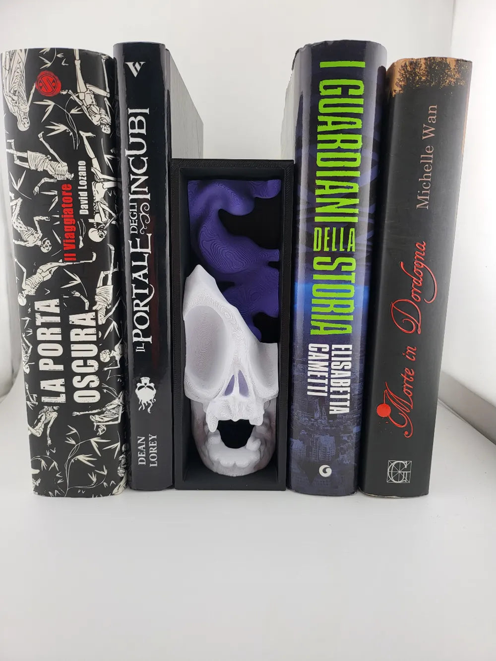 The Book Nook Smoke Skull adds a dramatic and haunting accent to any bookshelf. Featuring a sharply sculpted skull rising from a swirling smoke-like base, the Book Nook Smoke Skull creates a striking dark fantasy display. Its tall, slim form and smooth contrasting textures make it perfect for themed shelves, reading corners, or atmospheric décor setups.