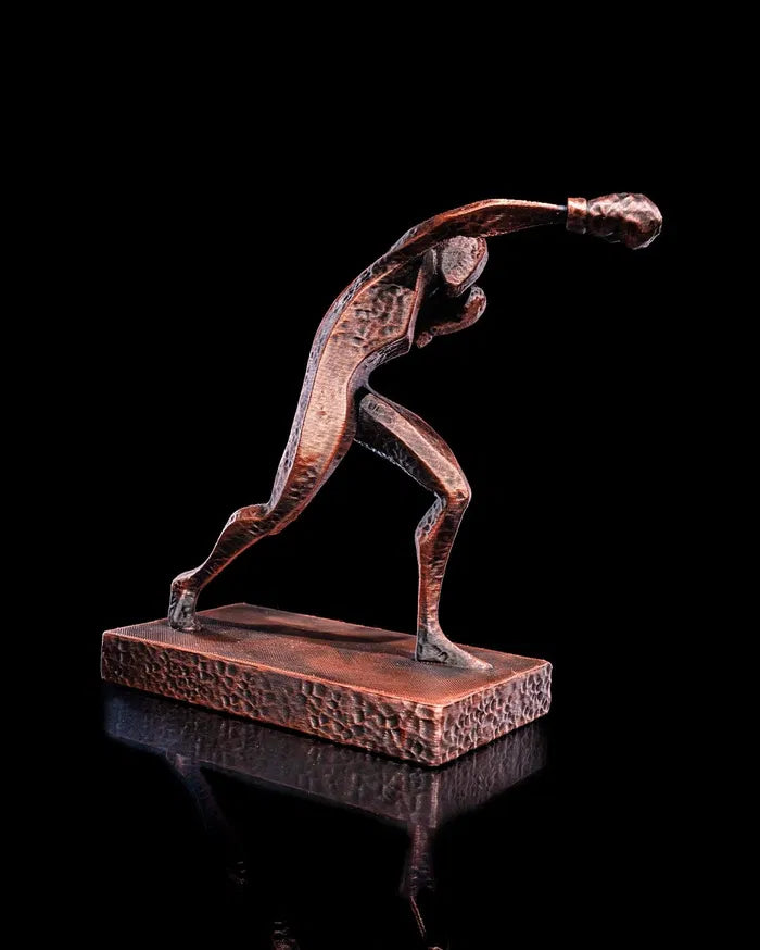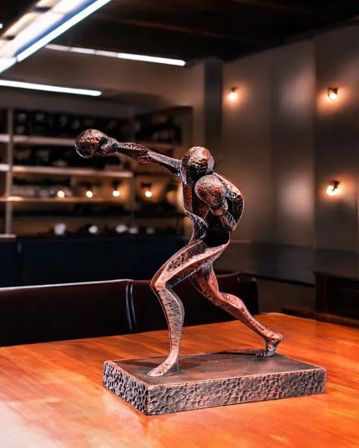 The Boxing statue delivers a powerful punch in sculpted form, showcasing a fighter in mid-action with fists raised and stance grounded. Crafted with a raw, hammered texture and bold metallic finish, it’s a striking homage to strength, precision, and the spirit of competition.