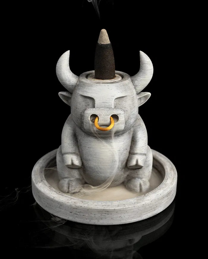 The Bull Dozer Backflow Burner charges into your space with strong style and a touch of humour. Featuring a horned bull with a golden nose ring, it sends incense smoke drifting downward like a powerful exhale, creating a striking and unique display.