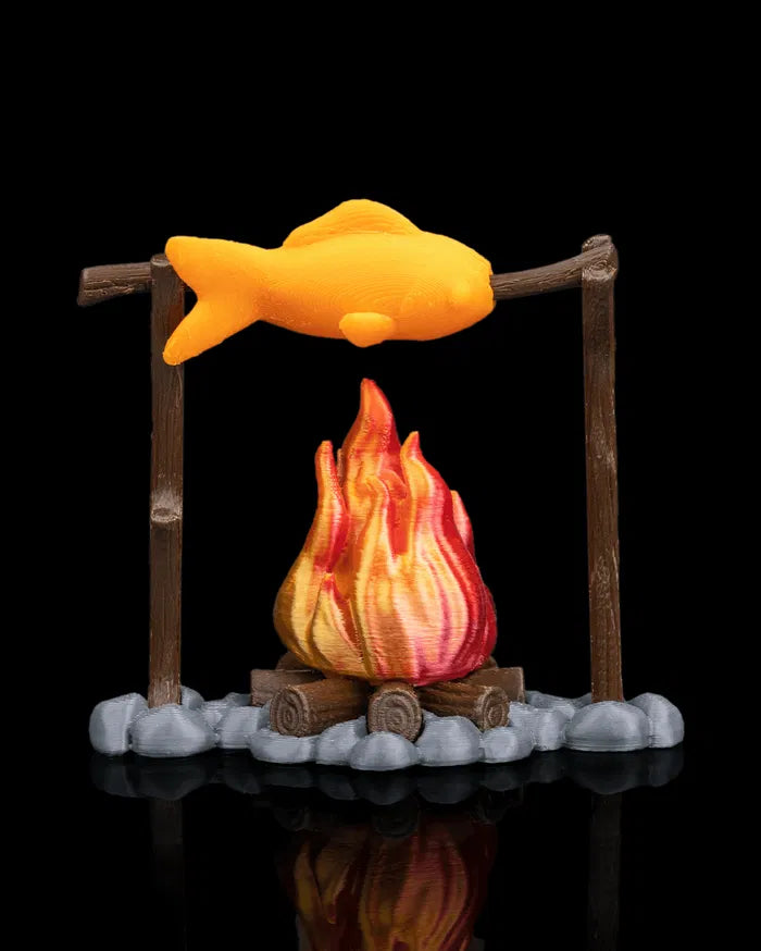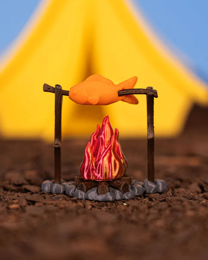 Campfire Cooking Set brings a warm, evening campsite feel to life as a 3D printed outdoor scene accessory. The central campfire creates a strong visual focal point, paired with simple cooking elements that suggest a cozy night outdoors. Clean shapes and textured details give the set a balanced, inviting look without feeling busy. It adds atmosphere and storytelling value to camping-themed displays or pretend play setups.