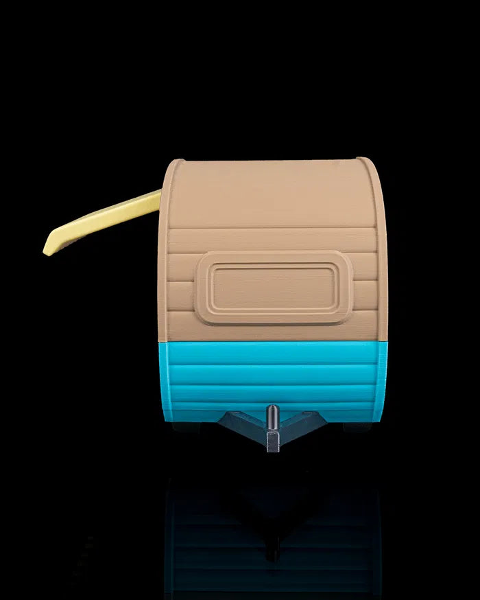 Camping Trailer - Container is a 3D printed trailer designed with a compact, clean look inspired by classic camping style. The smooth exterior and simple detailing give it a neat display presence on shelves or desks. It opens up to reveal interior storage, adding both visual interest and practical function. This piece blends decorative appeal with light organisation for themed setups.