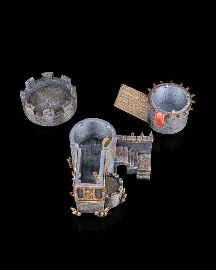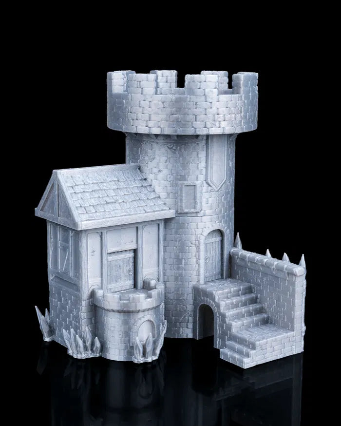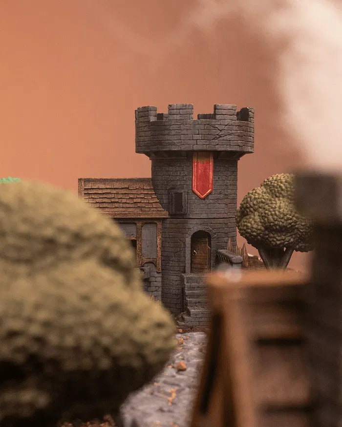 Captain's Quarters stands tall as the centrepiece of any medieval or fantasy tabletop world. With its stone tower, banner-wrapped lookout, and fortified walls, this detailed structure brings tactical charm and storytelling depth to your terrain. Whether it’s a command post or noble home, it’s ready for epic adventures.