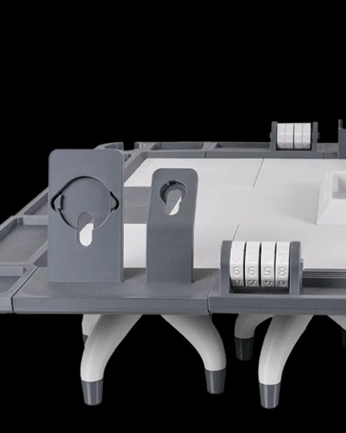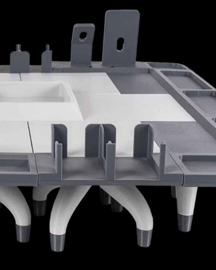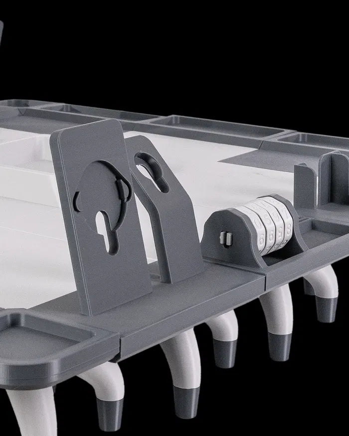 Designed for the tactician and trader alike, the Cardcore Table brings order to your chaos. With embedded slots, upright dividers, and a futuristic tech aesthetic, it’s the perfect command station for your card-based campaigns or collections.