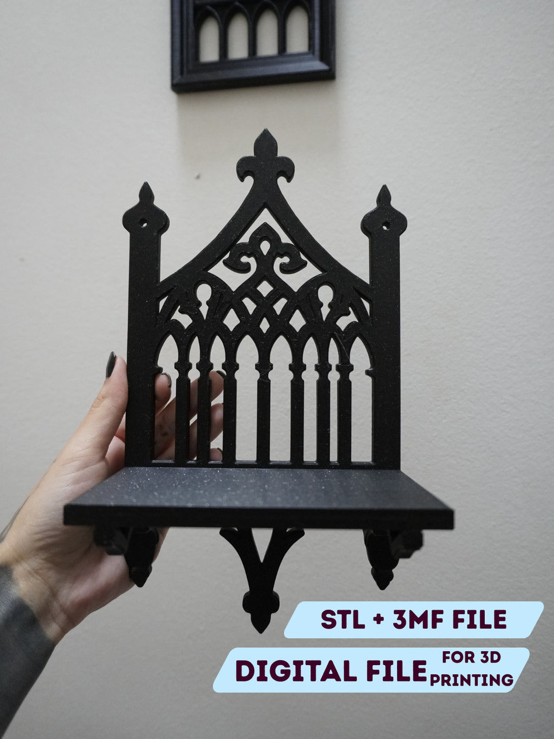 Bring the reverent beauty of gothic architecture into your space with the Cathedral Window Wall Shelf. Inspired by soaring cathedral facades and sacred stone tracery, this sculptural wall shelf functions as both a dramatic display altar and a striking piece of architectural art, perfect for showcasing treasured objects with intention and style.