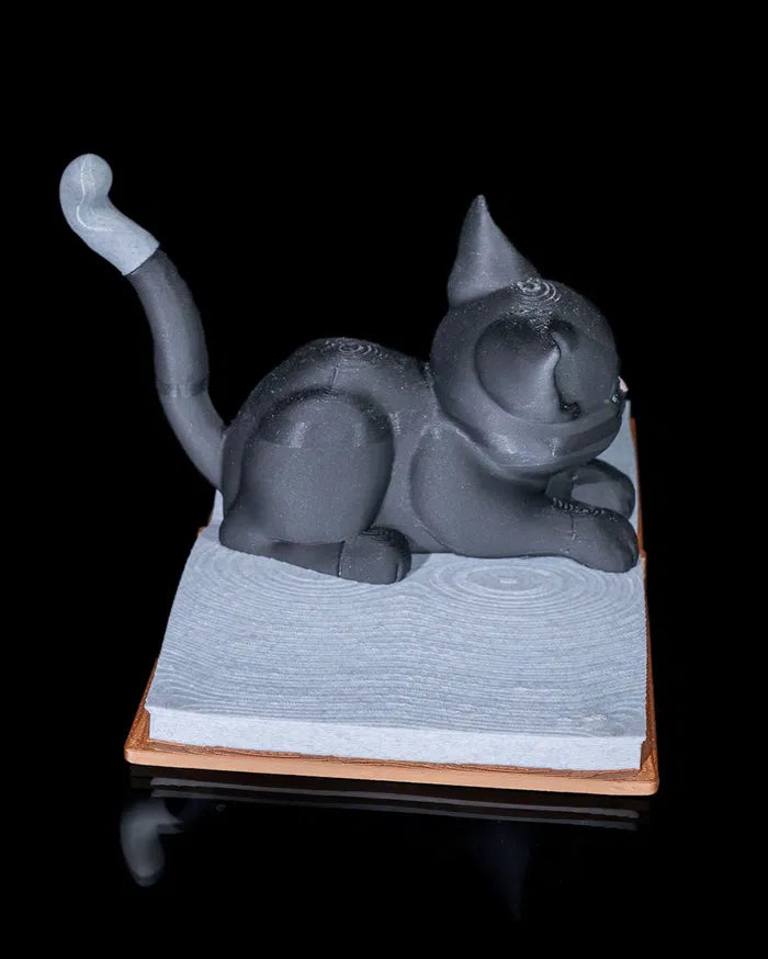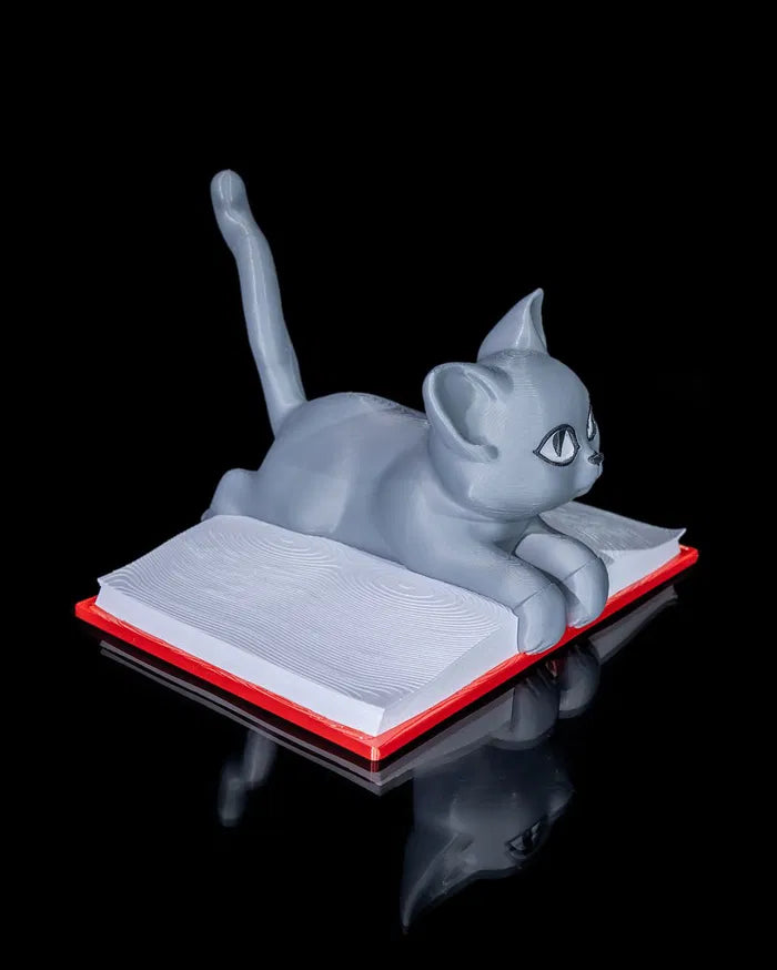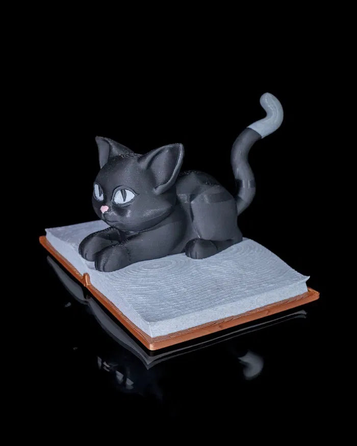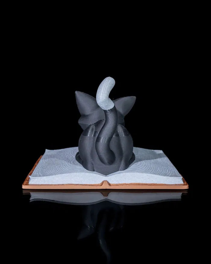 A curious little black cat playfully explores the pages of a book, blending the charm of feline mischief with the joy of reading. This adorable figure is perfect for those who cherish both literature and their furry friends.