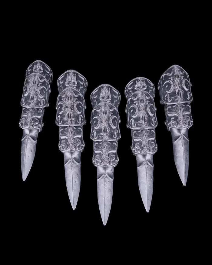 Channel a knight’s honor and an assassin’s edge with the Chivalric Points Claws. Each finger is sheathed in emerald-hued filigree that ends in razor-styled silver tips, giving you a lethal look worthy of fantasy duels and dark crusades alike. Fully articulated for dramatic slashes and poses, these claws turn every gesture into a statement of chivalric power.