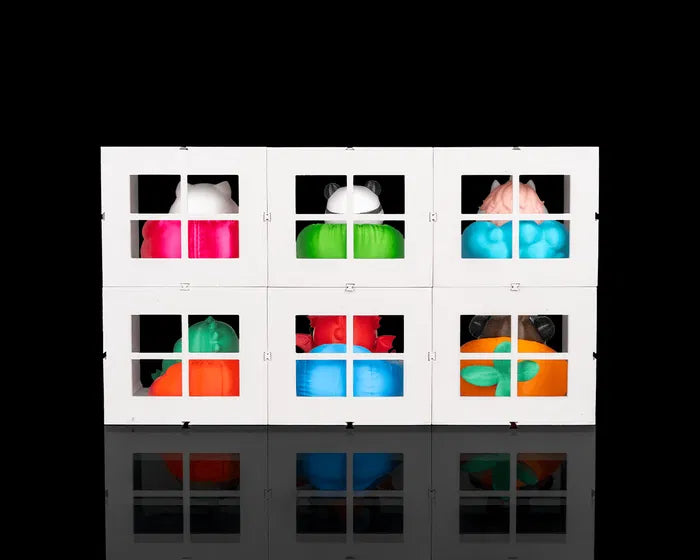 Give your hard-working beanbag squad the comfortable home they deserve with this modular display window system. These clean white frames are the perfect way to organize your favourite chubby companions, ensuring each one has a front-row seat for doing absolutely nothing at all.