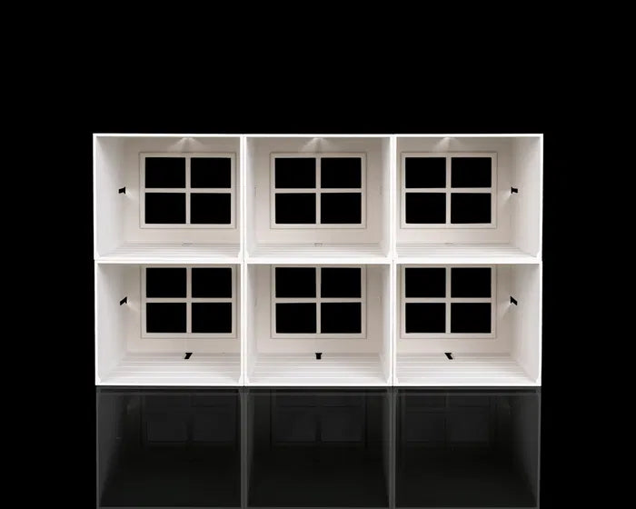 - Modular Window Design: Each display unit features a classic four-pane window frame that adds a charming architectural touch to your toy collection.