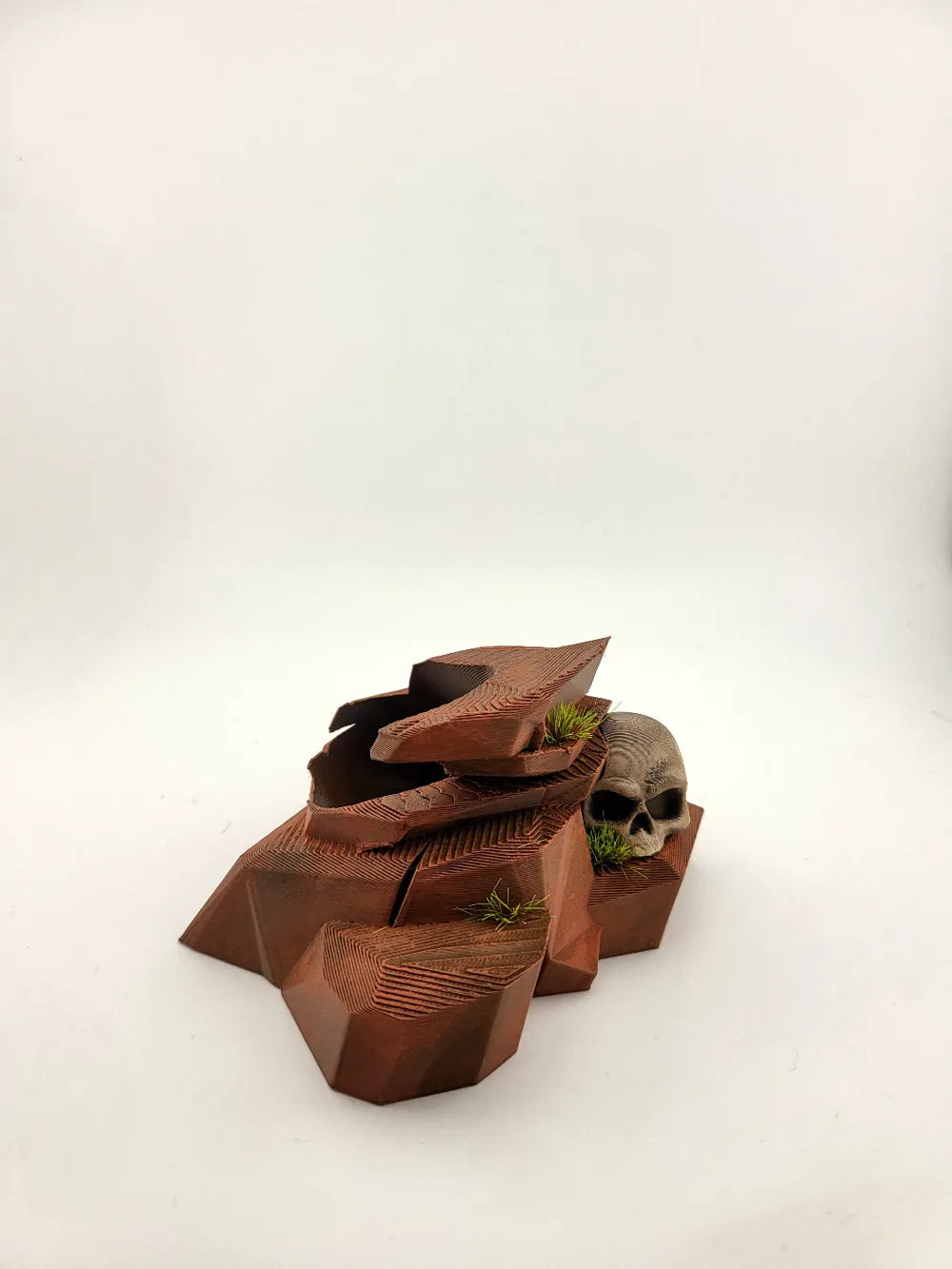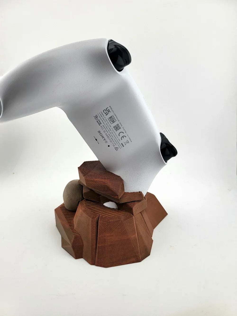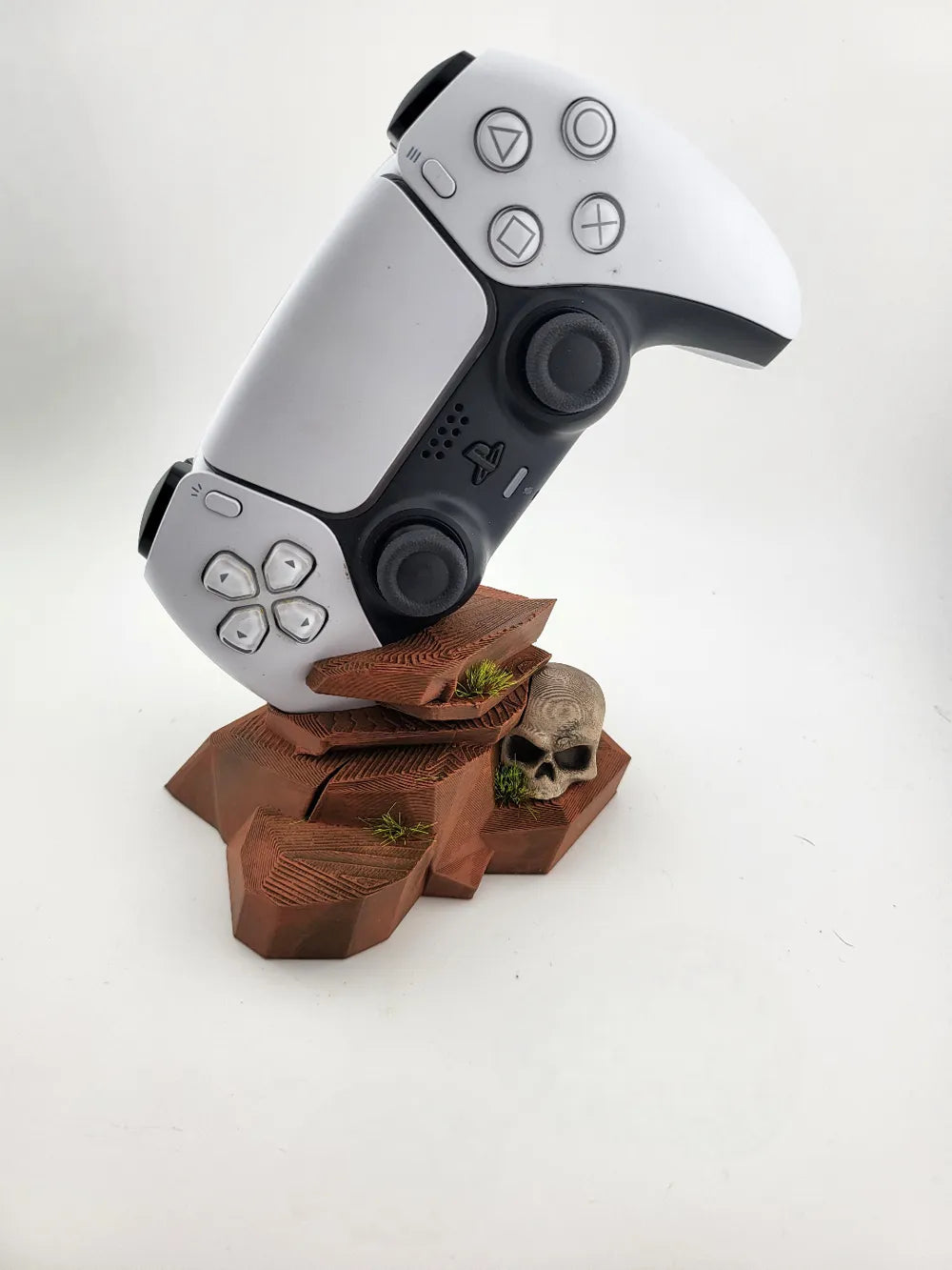 The Controller Stand PS5 Desert Skull combines rugged desert terrain styling with dark fantasy character. Featuring layered rock formations with cracked textures and a weathered skull resting at the base, the Controller Stand PS5 Desert Skull securely supports your PlayStation 5 controller while creating a dramatic scenic display. Small vegetation details and natural textures add an adventurous atmosphere, making it a standout piece for gaming desks or themed setups.