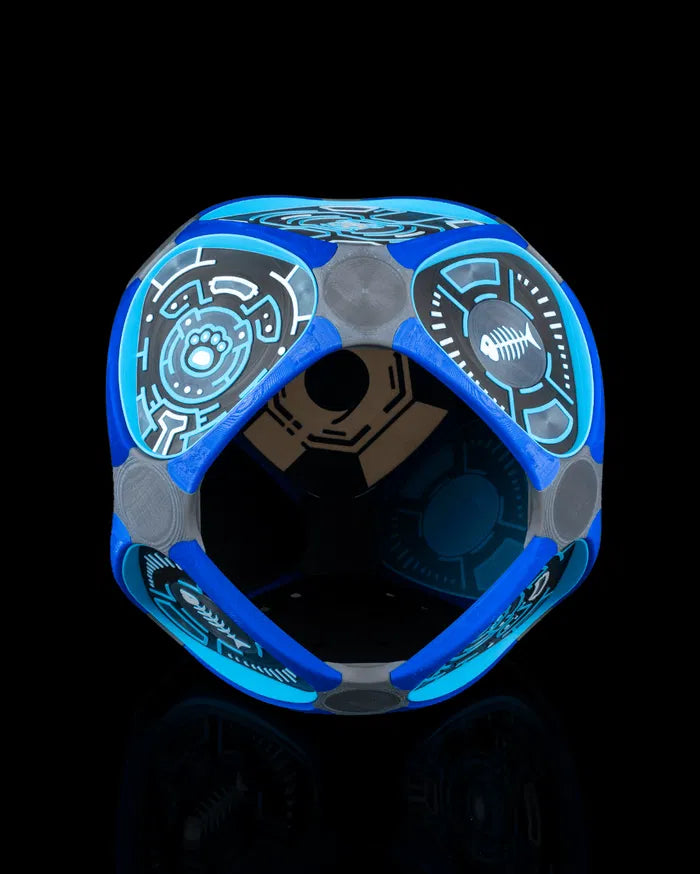 - Futuristic design with blue neon-like circuit patterns