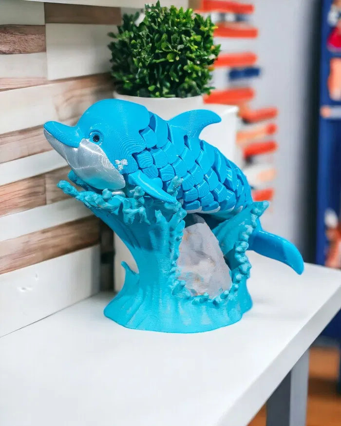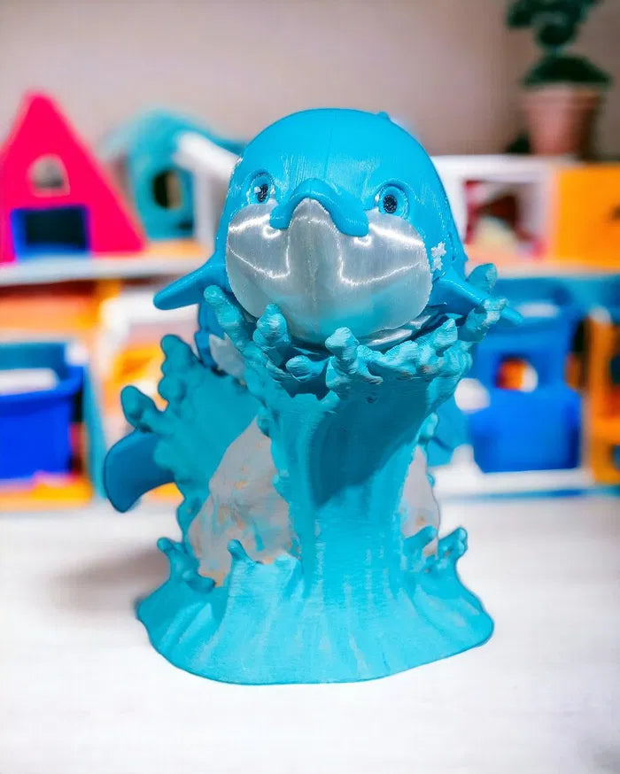 Full of energy and cheerful charm, Dennis, the Dolphin leaps from a splash of waves with a wide smile and expressive eyes. A delightful piece to brighten up any aquatic-themed space.