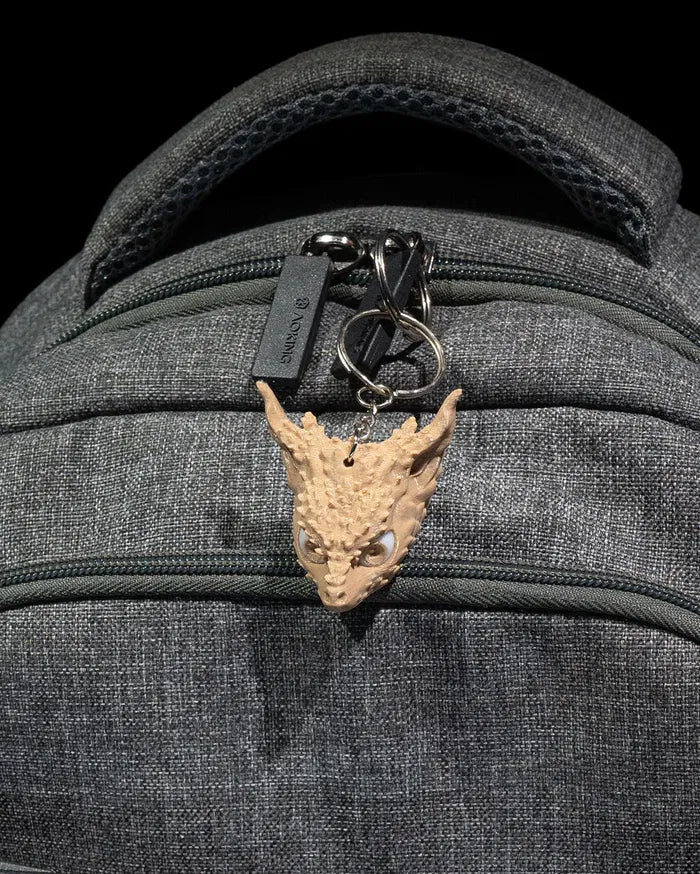 Cute, fierce, and full of personality, the Desert Baby Dragon Keychain is a tiny guardian with big attitude. Featuring textured scales, wide expressive eyes, and pointed ears, this sandy-toned hatchling is ready to ride along on your keys, bag, or lanyard.