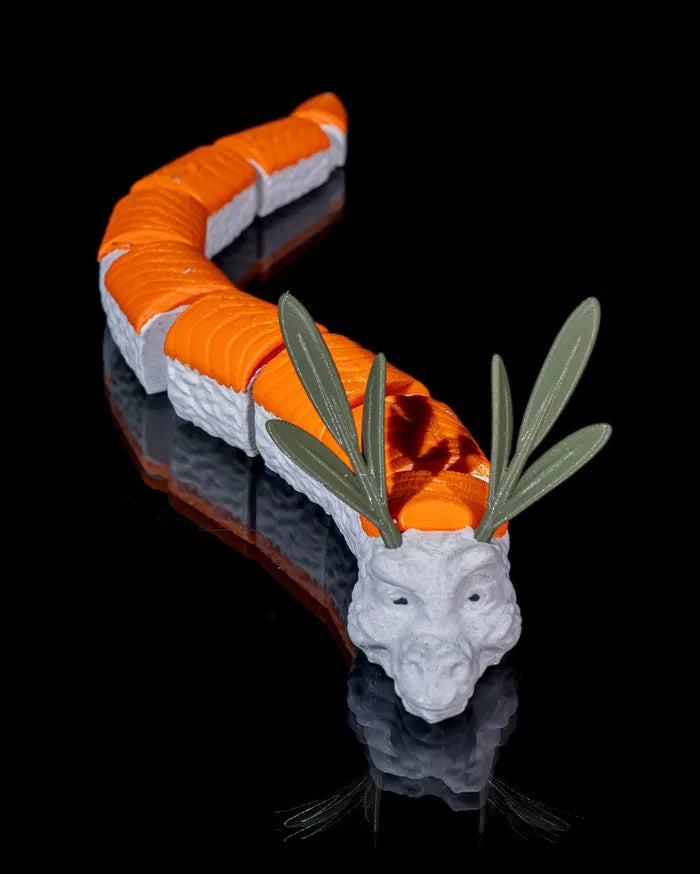 The Dragonigiri combines the elegance of sushi artistry with the fantasy charm of dragons. This uniquely crafted sushi boat features a playful dragon head detail and perfectly arranged sushi rolls, making it a whimsical and eye-catching addition to any dining setting or collector’s display.