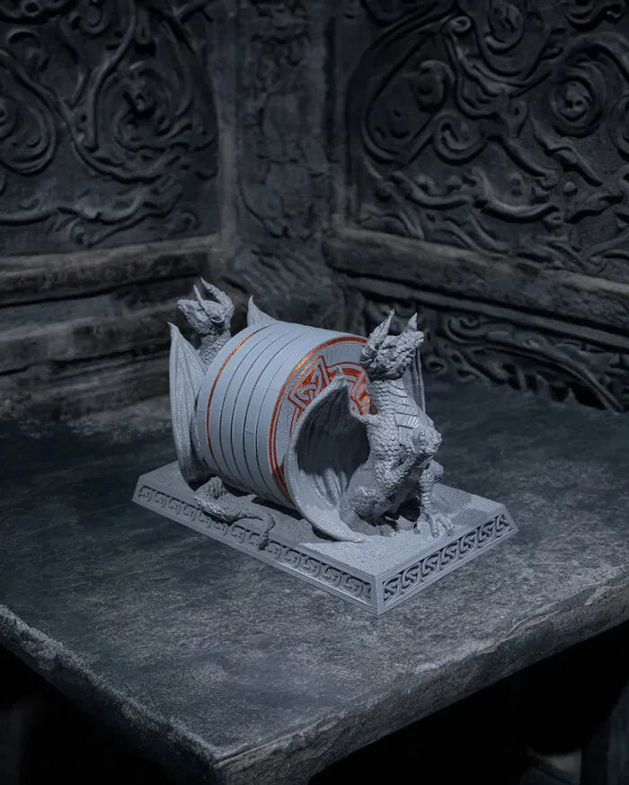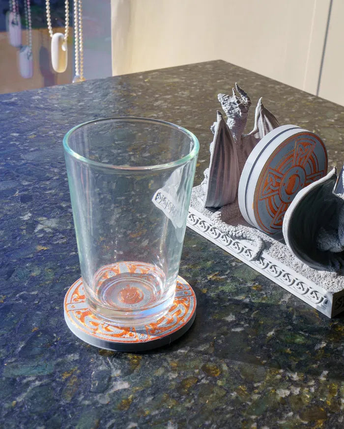 The Dragons of the Coasters set features twin intricately sculpted dragons holding a full set of coasters, combining functionality with fantasy-inspired design. The Dragons of the Coasters add dramatic, mythical charm to desks, dining tables, or gaming setups, making it a striking accent for collectors and fans of medieval or fantasy décor.