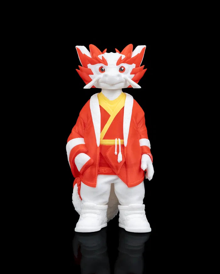 Drakhiroth "Hiro" blends dragon legacy with zen energy. With bright white scales, fiery red accents, and a traditional-style robe, Hiro exudes calm confidence and timeless power. His relaxed stance and gentle eyes suggest wisdom beyond his years—making him a standout figure in any fantasy lineup.
